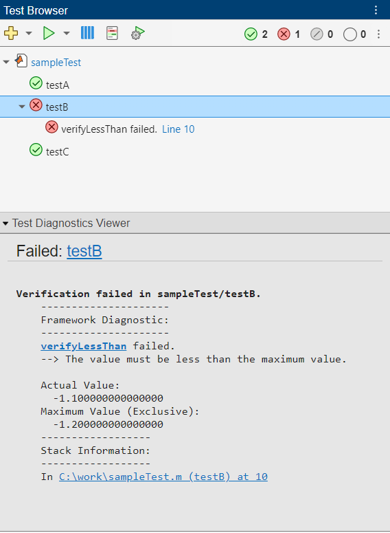 Running sampleTest 10 verifyLessThan(testCase,-1.1,-1.2) K>> verifyLessThan(testCase,-1.3,-1.2) K>>