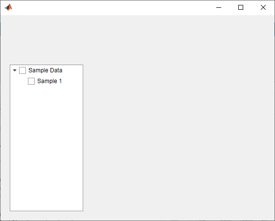 fig = uifigure; t = uitree(fig,'checkbox'); parent = uitreenode(t,'Text','Sample Data'); child = uitreenode(parent,'Text','Sample 1'); expand(t)