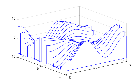 meshzfunction. To create a plot similar to a waterfall plot, set theMeshStyleproperty of the surface to'Row'.