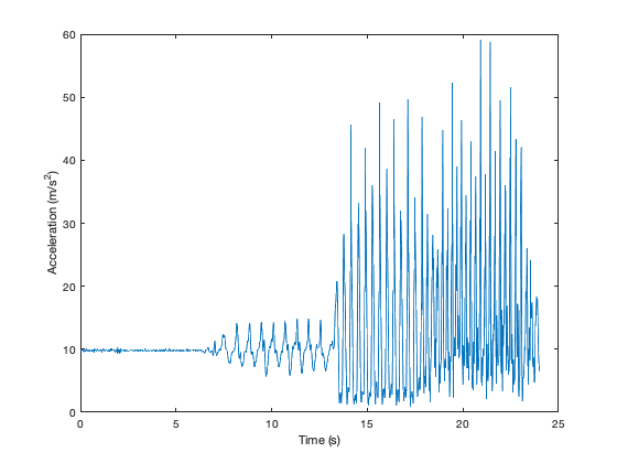 ylabel('Acceleration (m/s^2)')
