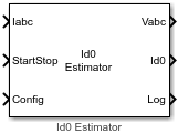The Id0 Estimator block computes the magnetizing current of an induction motor using the phase currents and the test configuration elements.