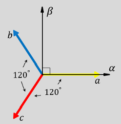 • The direction of the equivalent a, b, and c output components in the abc reference frame and the αβ reference frame.