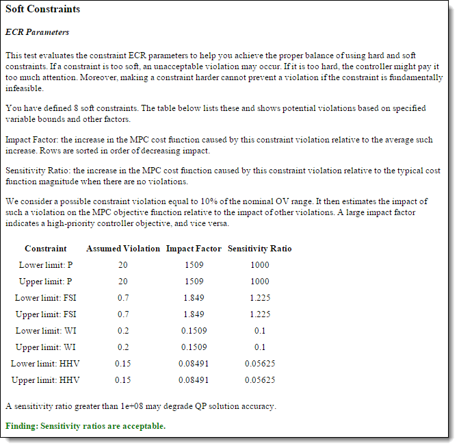 Soft Constraints — Test whether the controller has the proper balance of hard and soft constraints by evaluating the constraint ECR parameters.