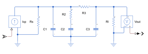 The third order passive loop filter with loading impedance Simscape model shown below is the same schematic as the one in Practical Circuit Design.