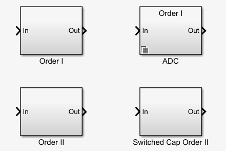 open_system(filterLibrary);For the data converter you can use a similar approach. The three available models of the data converter are stored in a custom library using a variant subsystem. The user can toggle which converter model to use by right clicking on the ADC block in the testbench and selecting a different active variant.