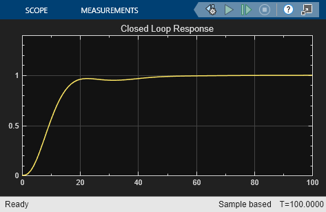 The problem is to design a feedback control loop that tracks a unit step input to the system. The closed-loop plant is entered in terms of the blocks where the plant and actuator are located in a hierarchical Subsystem block. A Scope block displays output trajectories during the design process.