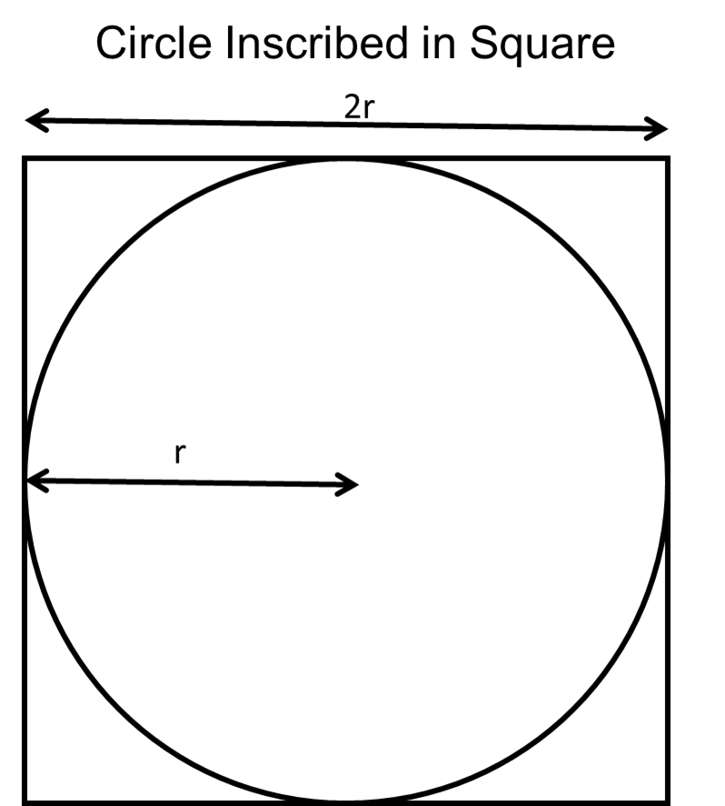 Given a circle with radius inscribed within a square with sides of length , the area of the circle is related to the area of the square by . This figure illustrates the problem.