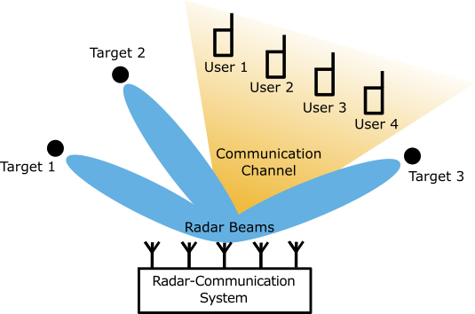 Design a set of waveforms for a dual-function multiple-input-multiple-output (MIMO) radar-communication (RadCom) system. Simulate a RadCom system that can detect targets in range and azimuth, as well as transmit data to multiple downlink users.