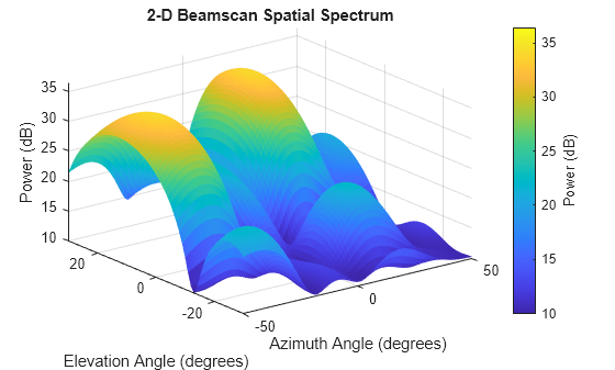 System object™ calculates a beamscan 2-D spatial spectrum estimate for any Phased Array System Toolbox™ array. The object estimates the incoming signal spatial spectrum using a
