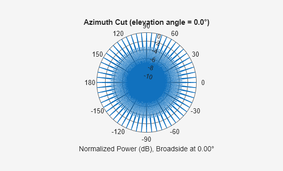 pattern(array,fc,az,el,'CoordinateSystem','polar','Type','powerdb',... 'Normalize',true,'PropagationSpeed',physconst('LightSpeed'))