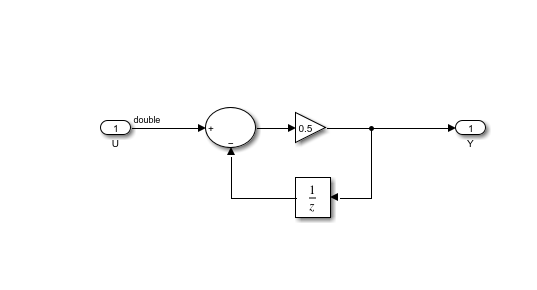 The simple_cosim model is made up of the SimpleSubsystem block and the MATLAB System (PLCCOSIM) block. During simulation, the model compares values from the SimpleSubsystem block to the values from the soft plc which are retrieved by using the MATLAB System (PLCCOSIM) block.