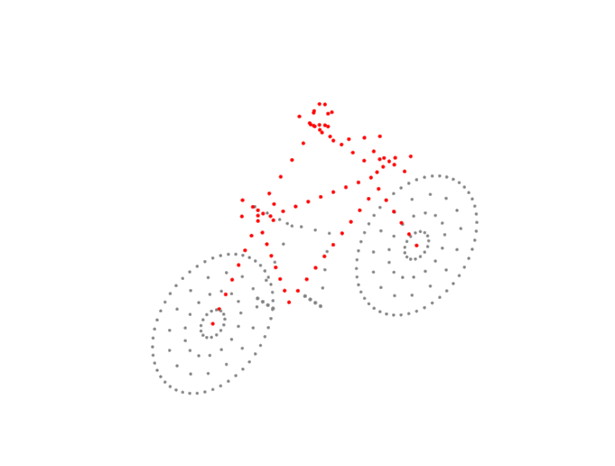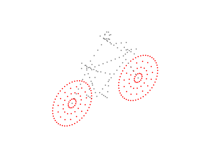 Excluding the wheels, there are 114 scatterers on the bicyclist. The wheels
