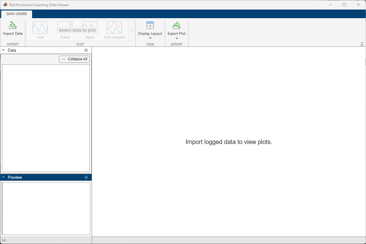 Open a Reinforcement Learning Data Viewer window using rlDataViewer.