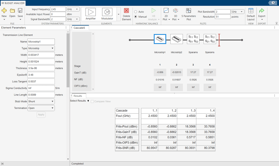 You can now use the RF Budget Analyzer app to treat an N-port element with multiple ports as a 2-port element.