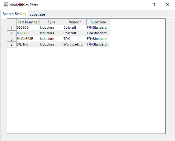 search | Search Modelithics component of interest (Since R2023a) |
