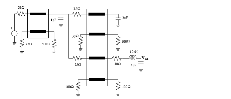 The circuit in this example contains two sets of lossy coupled transmission lines. The RLGC line parameter matrices of the two lines are as follows [1].