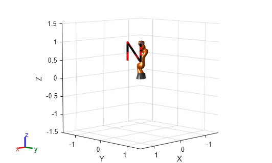 Input the desired end-effector Pose, the Weights on pose tolerance, and an InitialGuess for the joint configuration. The solver outputs a robot configuration, Config, that satisfies the end-effector pose within the tolerances specified in the Solver Parameters tab.