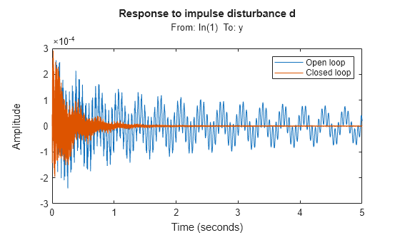 Next plot the open- and closed-loop responses to an impulse disturbance d. For readability, the open-loop response is plotted only for the nominal plant.