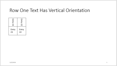 Use an mlreportgen.ppt.TextOrientation format object to specify the