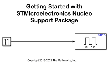 Simulink Coder Support Package for STMicroelectronics Nucleo Boards enables you to create and run Simulink models on supported STMicroelectronics Nucleo boards. The support package includes a library of Simulink blocks for configuring and accessing STMicroelectronics Nucleo peripherals and communication interfaces.