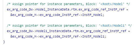 For multi-instance referenced models, the parameter arguments are part of a hierarchically nested structure that the top model declares and defines. The referenced model has access to its parameter values through a pointer in its self structure. The self structure points to a substructure of the structure that the top model defines.