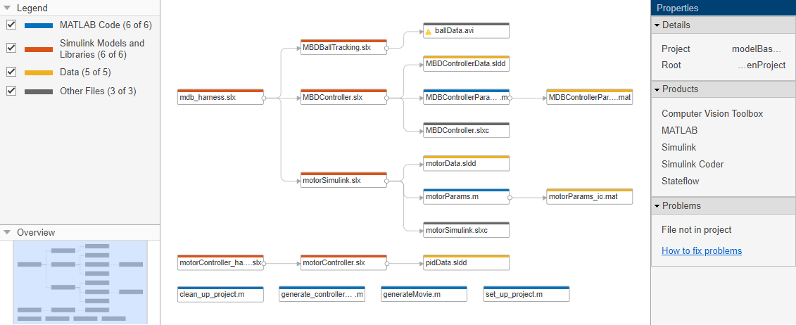 addPath(proj_modelBasedDesignCodeGen,'work');5. To make the project more accessible, define and set properties for project shortcuts. In the Files View, select the Project tab. Open the utilities folder node.