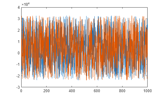 sigdata = randi([-24000 32767],1000,2); sigdata(:,2) = sigdata(:,2) + 0.7*randn(1000,1); plot(sigdata)