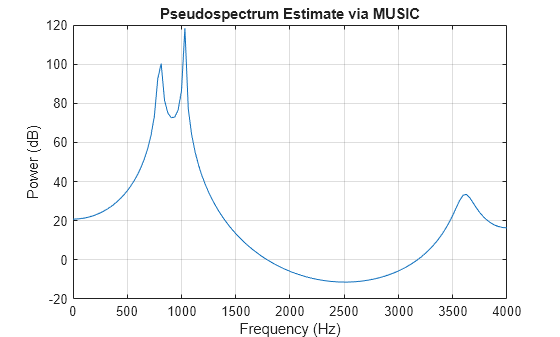Pseudospectrum using MUSIC algorithm