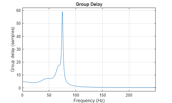 Digital filters introduce delay in your signal. Depending on the filter characteristics, the delay can be constant over all frequencies, or it can vary with frequency. The type of delay determines the actions you have to take to compensate for it. The grpdelay function allows you to look at the filter delay as a function of frequency. Looking at the output of this function allows you to identify if the delay of the filter is constant or if it varies with frequency (in other words, if it is frequency-dependent).