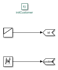 In this example, initialize the generated entities by calling into a Simulink Function that returns initial values for attributes as shown below.