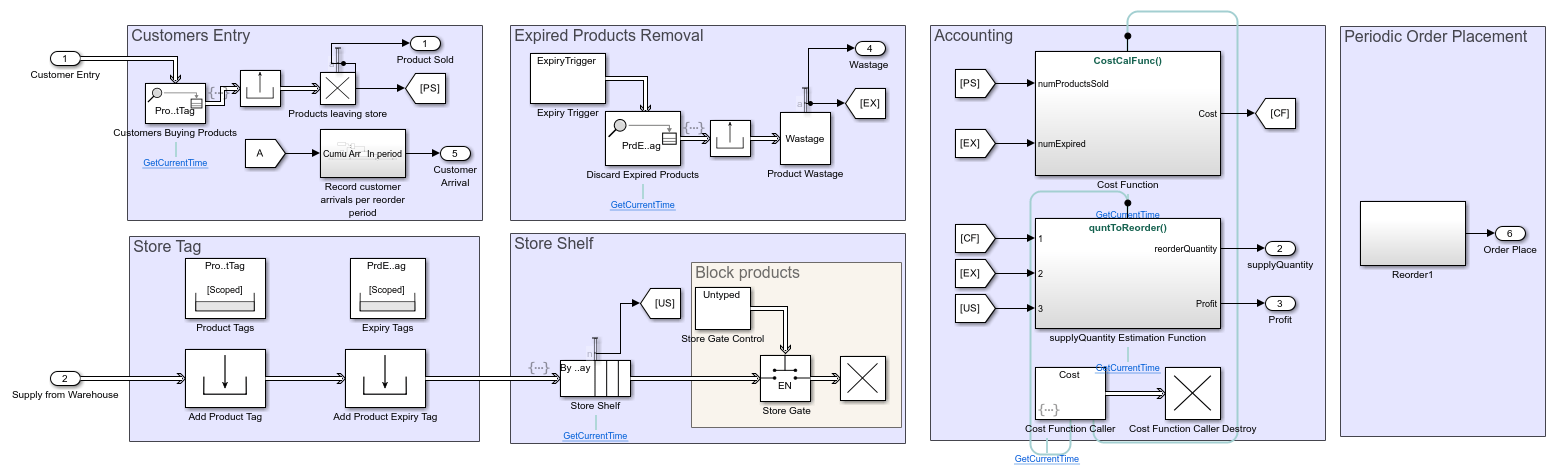 Accounting: This area models the investigation of profitability of the retail store for the duration between consecutive product ordering points. The profit is calculated as a function of the product procurement price, product holding cost and the product selling price. The profit also plays a role in determining the number of products that the retail store orders. If the store is profitable in the current period, then the new quantity to be ordered is the sum of the previously ordered quantity plus any unfulfilled orders. This is also adjusted for expired and unsold products.