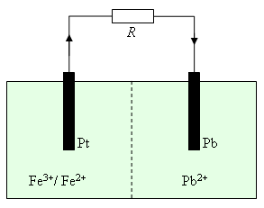 Two half-cells are separated by a membrane that prevents the ions flowing between cells, and hence electrons flow from the solid lead anode to the platinum cathode. The two half-cell reactions are: