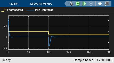 In another common control configuration, the actuator receives a control signal that is a combination of a PID control signal and a feedforward control signal. Open the model sldemo_antiwindupfeedforward.