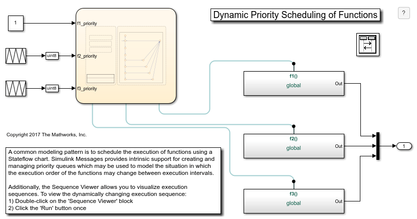 A common modeling pattern to dynamically schedule the execution of functions using a Stateflow® chart.