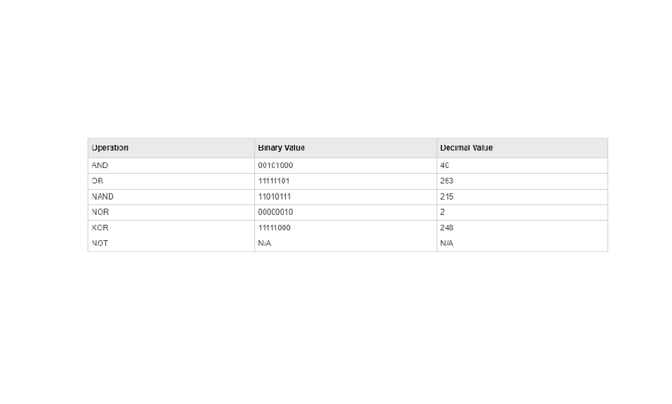 | Bitwise Operation | Description |