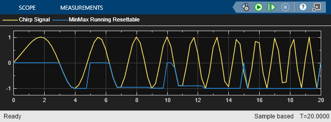 Suppose that you use a Chirp Signal block in an enabled subsystem. Whenever the subsystem is enabled, the block output matches what would appear if the subsystem were enabled throughout the simulation.