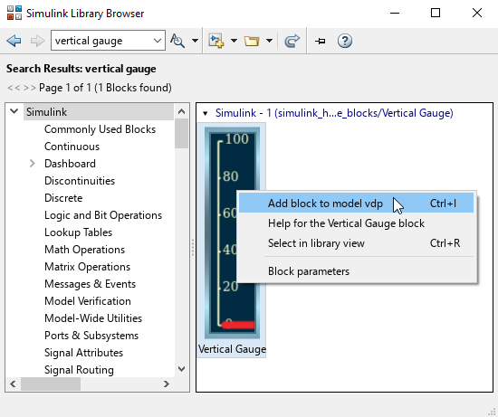 Use standalone Library Browser to find and add blocks to model