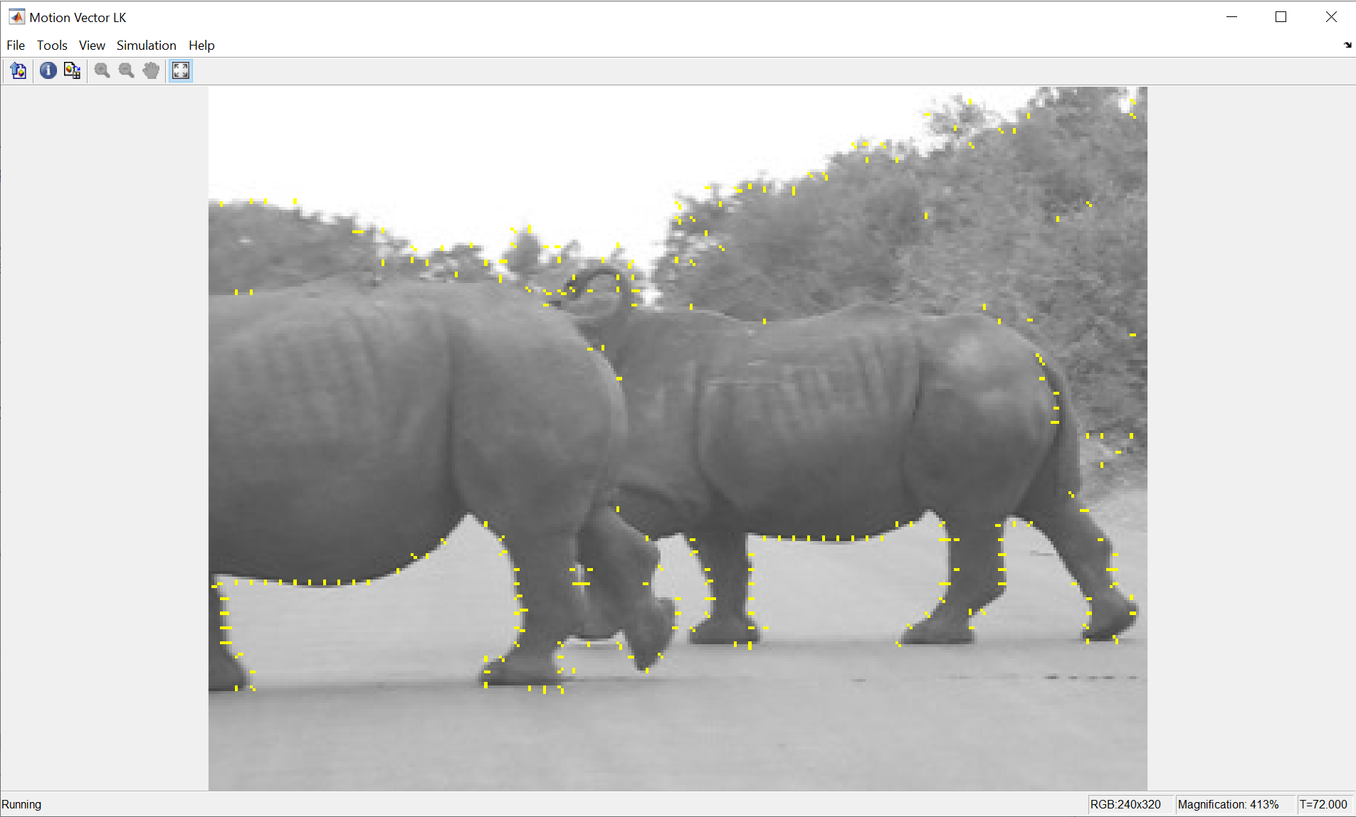 You can configure the Neighborhood Processing Subsystem block to process only certain elements of an input matrix. Use the Stride parameter to configure the Neighborhood Processing Subsystem block to skip a certain number of elements at each iteration. Use the Processing offset and Processing width parameters to define the top left and bottom right boundaries, respectively, of a region of interest (ROI) within the image. The Neighborhood Processing Subsystem block iterates over only that region.