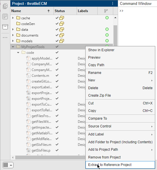 1. Right-click the folder you want to use to create a new project and select Extract to Reference Project.