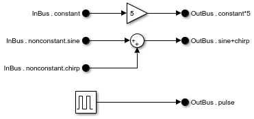 Open and compile the example model named SignalOutputBusPort. To compile the model, on the Modeling tab of the Simulink® Toolstrip, click Update Model or Run. Compiling the model updates the line styles, which you can use to visually identify buses.