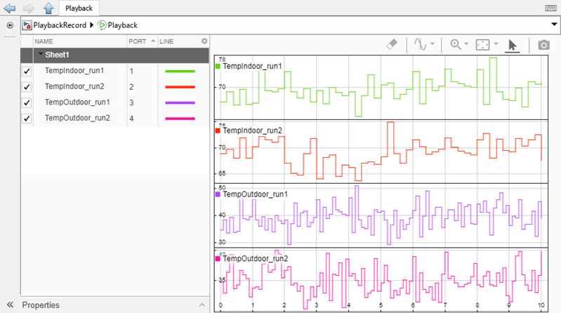 For more information about workspace variables and file formats supported by the Playback block, see Import Data from Workspace or File into Simulation Data Inspector.