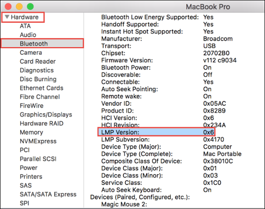 Under the Hardware tab, select Bluetooth. To find the version of Bluetooth on your Mac, find LMP Version in the list. If the version is