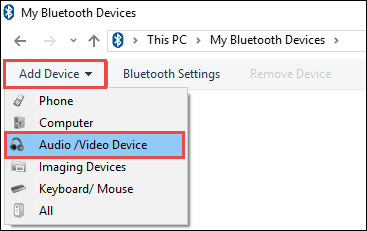 In the top-left corner, click Add Device and select Audio /Video Device from the menu.