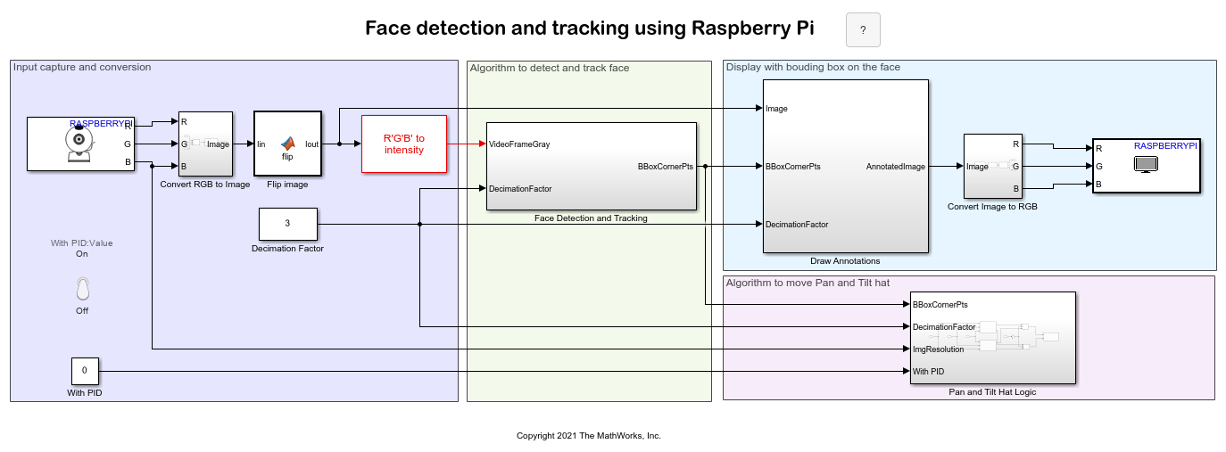 Open the raspberrypi_pantilthat_face_tracking Simulink model.