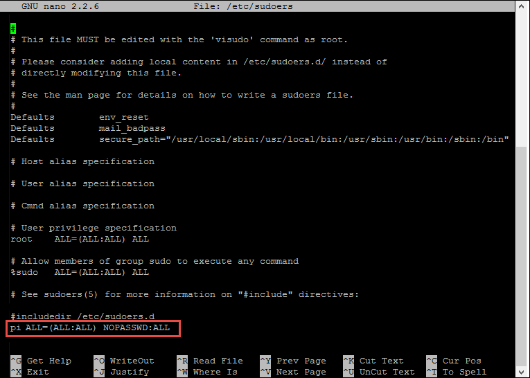 pi, type:pi ALL=(ALL:ALL) NOPASSWD:ALL