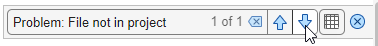 To go through these files, use the arrows in the search box (e.g., Problem: File not in project).