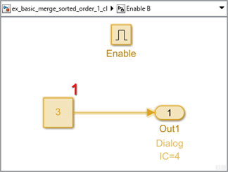 The execution order of conditional subsystems that use classic mode initialization, when connected to a Merge block, can affect the output of that Merge block. A change in block execution order can produce unexpected results. The behavior depends on how you set the Output When Disabled parameter.