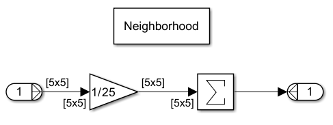 This example shows how to create a model that performs neighborhood processing by using the Neighborhood Processing Subsystem block to blur an image. Neighborhood processing algorithms operate on images by iteratively processing windows of pixels, called neighborhoods, within the image.