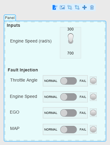 This example shows you how to create, edit, and manage the visibility of a panel for testing a fuel control system.