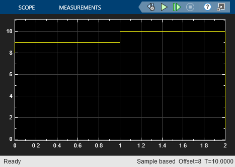Open the model and run the simulation to see the original scope output. The simulation runs for 10 time steps, stepping up by one at each time step.